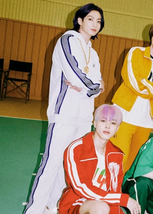 Jungkook-Inspired White Butterfly Striped Track Hoodie – BTS Edition