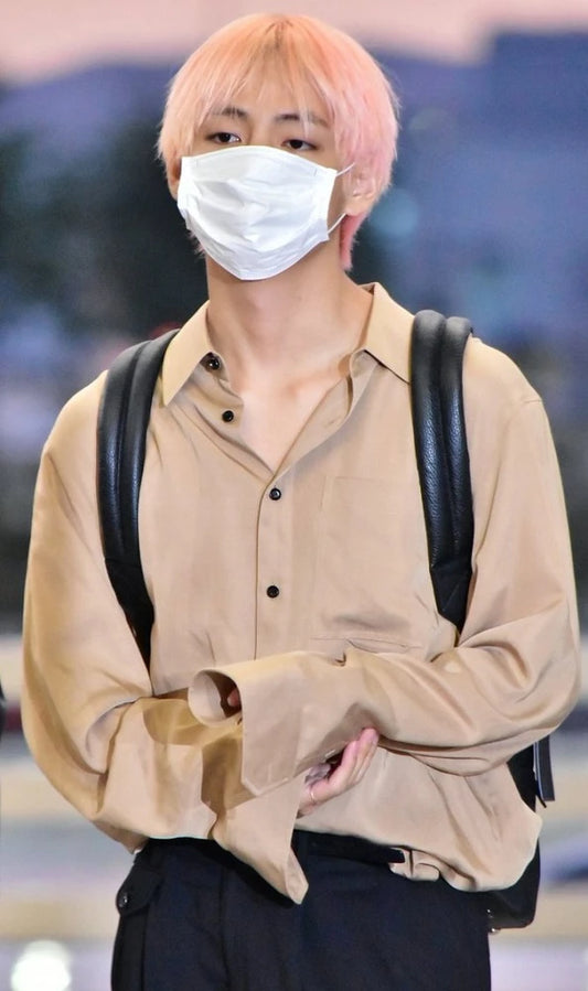 Taehyung-Inspired Beige Loose Shirt – BTS Edition