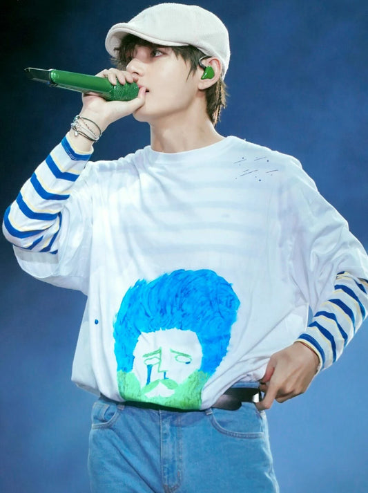 Taehyung-Inspired White Graffiti T-Shirt – BTS Edition