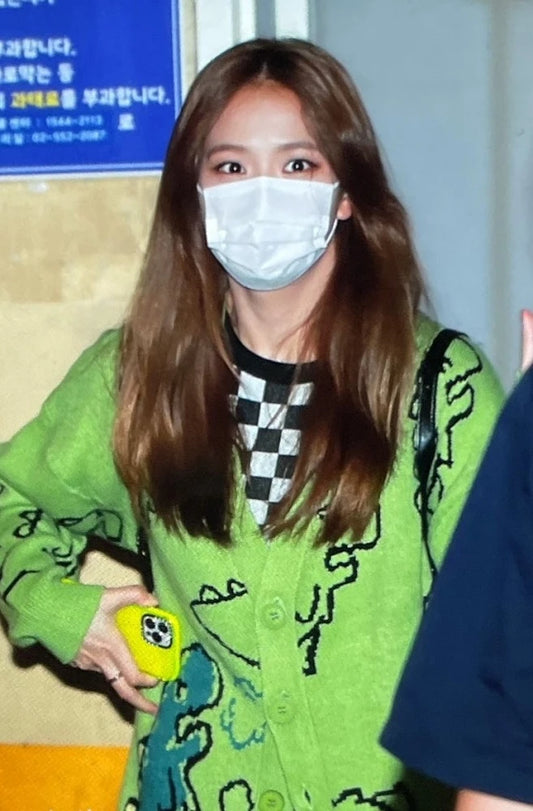 Jisoo-Inspired Green Cartoon Dinosaur Cardigan – BlackPink Edition